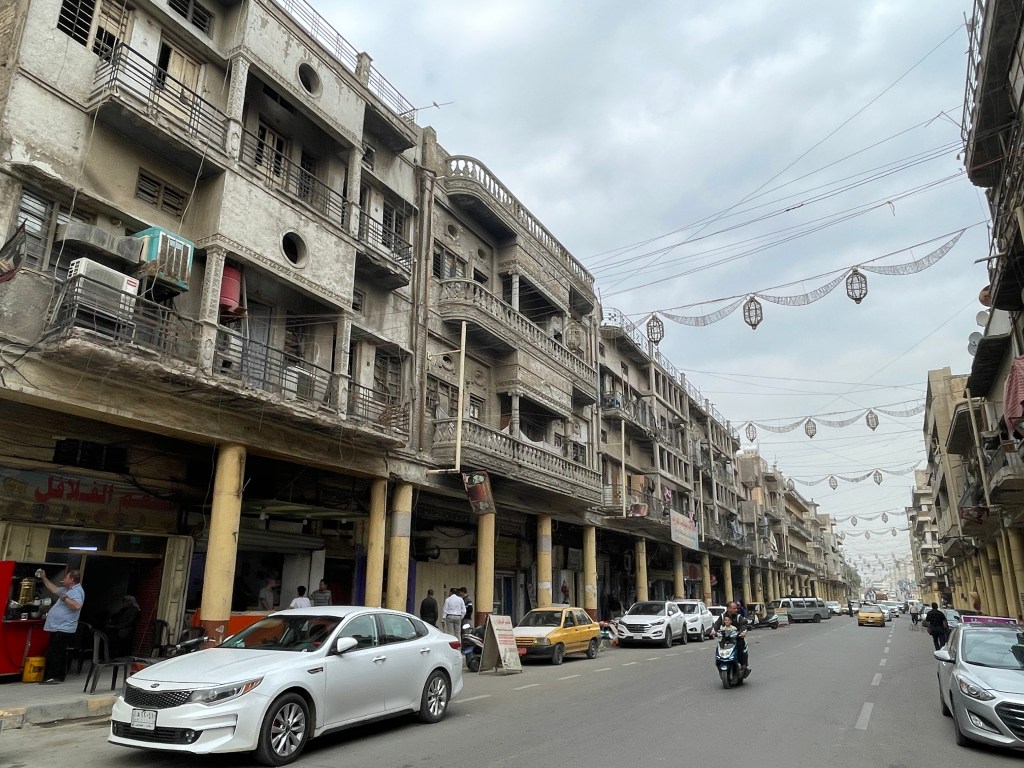 Finalmente, me subí al coche, un típico taxi iraquí: ventanillas que solo se bajan manualmente, espejos laterales rotos o ausentes, puertas llenas de abolladuras y rayones, pero con un encanto propio. Un testigo rodante del caos y la belleza de la ciudad.