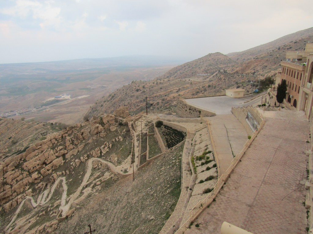 Era mi 4to día en Mosul, con la ayuda de Abdullah, el recepcionista de mi hotel, conseguí un chofer para llevarme hasta el monasterio. A las 16:00 hs. partí con mi objetivo de llegar antes del atardecer. Con el chofer, pasamos los controles sin ningún contratiempo y finalmente estaba allí: al pie del Monte Alfaf, a punto de vivir una experiencia que sabía, quedaría grabada en mi memoria para siempre. Comenzamos a subir por el camino serpenteante.