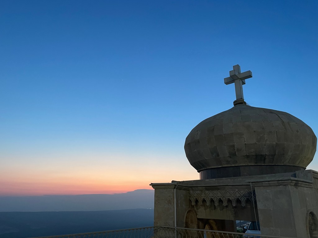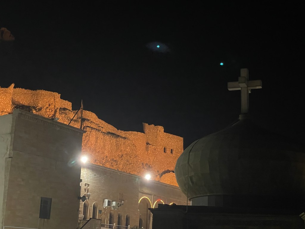 Cuando decidí viajar a Iraq, uno de mis objetivos principales era experimentar la historia viva de uno de los tantos monasterios de montaña. Inspirada por relatos de otros viajeros, me propuse investigar cuales están habitados por monjes actualmente y si ofrecen la posibilidad de hospedaje a peregrinos. Finalmente encontré un relato sobre el monasterio de Mar Mattai (San Mateo), ubicado en el norte de Iraq, en la histórica región de Nínive. Este monasterio, enclavado en la cima del Monte Alfaf, se convirtió inmediatamente en uno de mis destinos principales.