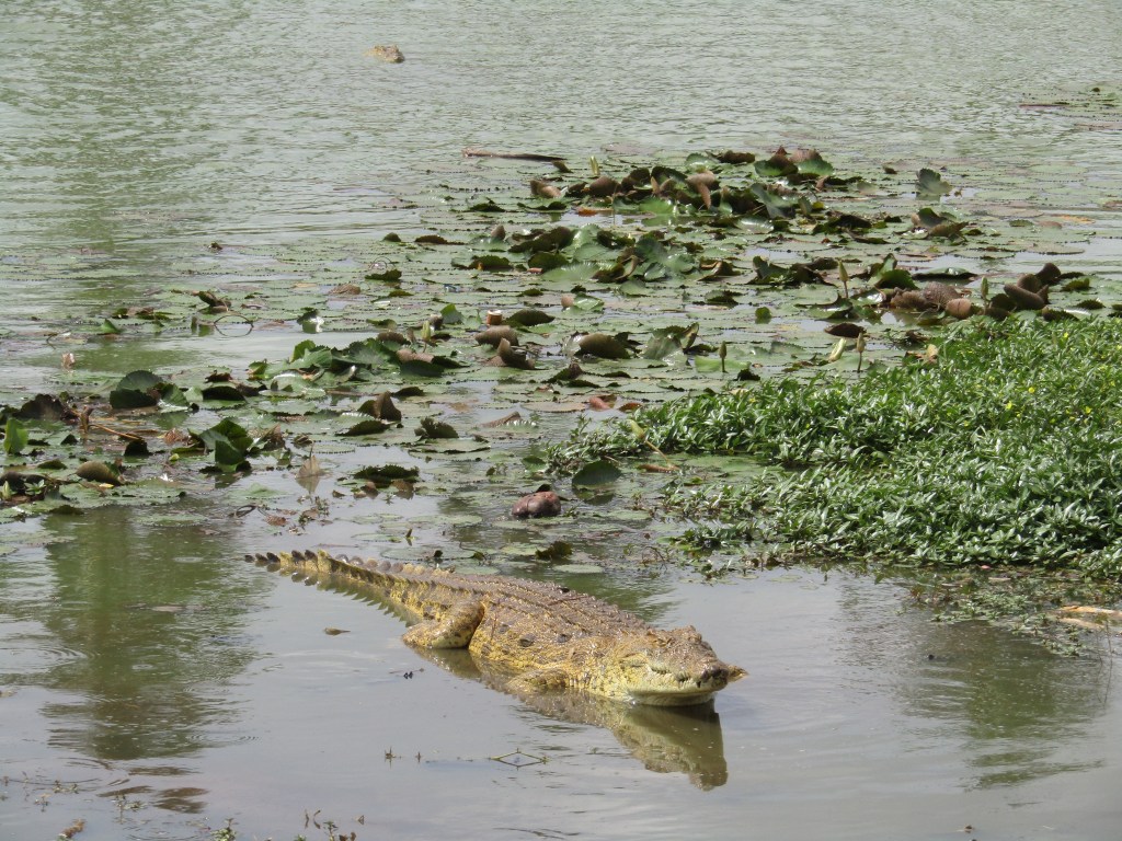 Antes de llegar al centro, hicimos una breve parada frente al Palacio Presidencial, donde —casi como una postal improbable— habitan cocodrilos que son alimentados cada tarde. Una escena curiosa difícil de encajar en cualquier logica.